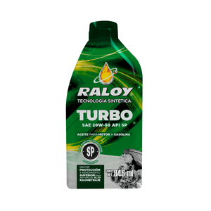 Aceite sintético Raloy Racing Turbo 20W50 API SIN de ultra alto rendimiento para motores de competencia y vehículos modificados. Tipo de motor: Gasolina de alto desempeño (N/A, Turbo o Supercargado). Tecnología: Formulación con 1200ppm de ZDDP y estabiliz