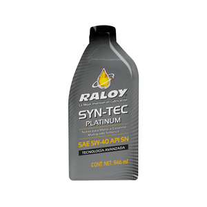 El aceite sintético Raloy SN Platinum 5W40 es un lubricante premium con certificación API SN, diseñado para motores modernos de alto rendimiento. Ofrece protección superior contra el desgaste, control avanzado de depósitos y máxima resistencia térmica. Ideal para vehículos con turbo y sistemas start-stop. Presentación de 946 mililitros.