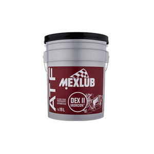 Fluido para transmisiones automáticas clásicas. El Aceite Mexlub ATF Dexron II está formulado para cumplir con los requisitos de transmisiones automáticas que especifican fluido Dexron II. Ofrece protección contra el desgaste, estabilidad oxidativa y garantiza cambios suaves en sistemas de transmisión tradicionales. Cubeta de 19 litros.