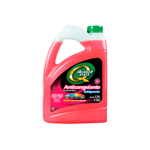 Anticongelante Quaker State de alto rendimiento en presentación de 1 galón (3.785L). Tipo: Concentrado para mezclar 50/50 con agua destilada. Tecnología: Formula con inhibidores de corrosión para proteger aluminio, cobre y acero. Compatibilidad: Motores g