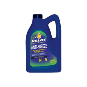 El anticongelante Raloy RL-5 premezclado protege el sistema de enfriamiento contra congelamiento y corrosión. Listo para usar, no requiere dilución. Ideal para vehículos modernos. Presentación en galón.