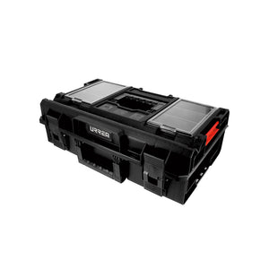 Caja portaherramientas plástica modular con compartimentos color negro 23" x 15" x 7" Urrea