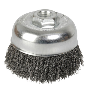Carda copa ondulada alambre delgado 4" x 0.35 mm con rosca 5/8" Foy