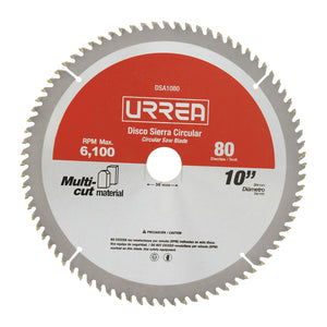 Disco para sierra circular para corte multi-material 80 dientes, 10" Urrea