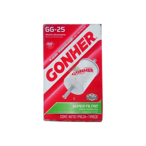 Filtro modelo GG25 diseñado específicamente para bombas surtidoras de gasolina. Garantiza una filtración eficiente y confiable para equipos de estación de servicio, asegurando la calidad del combustible suministrado.