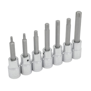 Juego de dados con punta torx cuadro de 1/2", en riel, 7 piezas Urrea