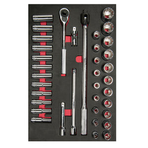 Juego de dados cortos,largos y accesorios cuadro de 1/2" métricos 37 piezas, CH311-C Urrea