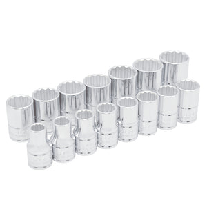 Juego de dados cuadro de 1/2", 12 puntas, métricos, 15 piezas Urrea