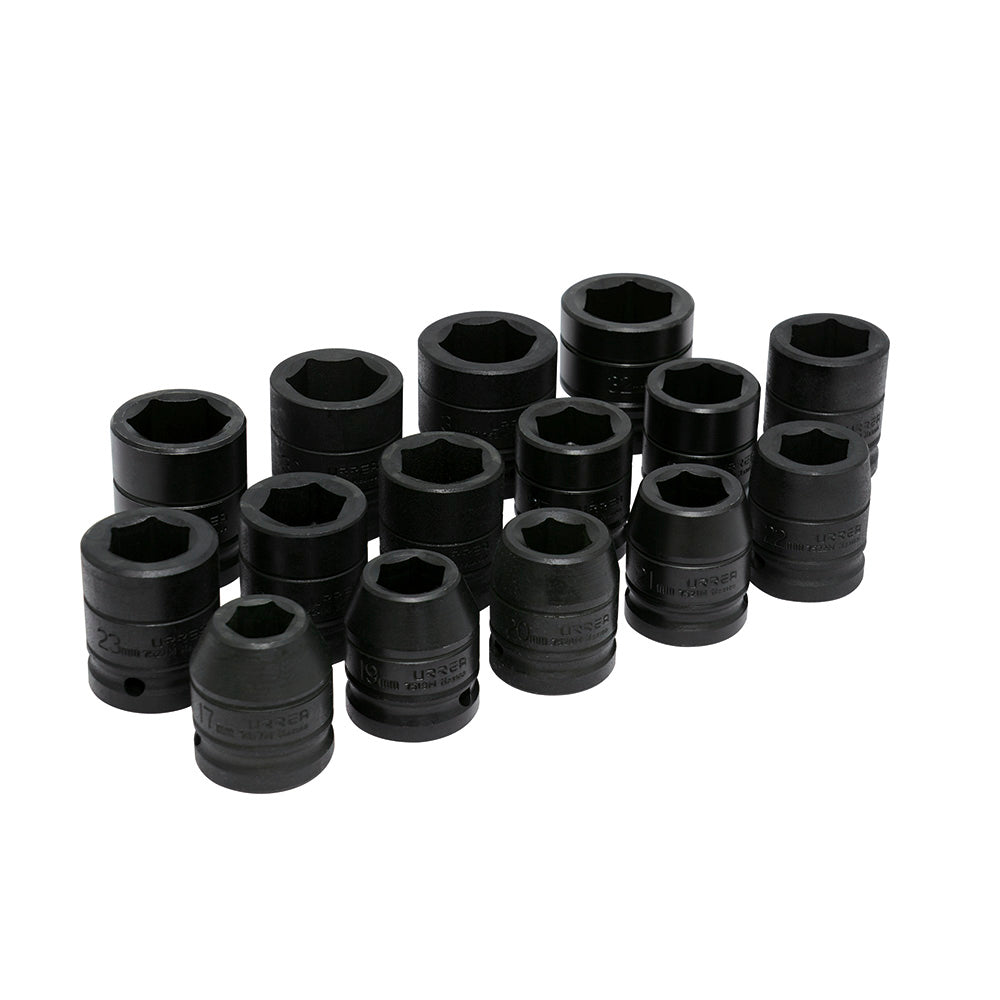Juego de dados de impacto cuadro de 3/4", 6 puntas, métricos, 15 piezas Urrea