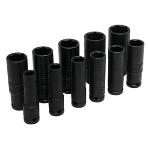 Juego de dados de impacto largos pared delgada cuadro de 1/2", 6 puntas, en pulgadas, 11pz Urrea
