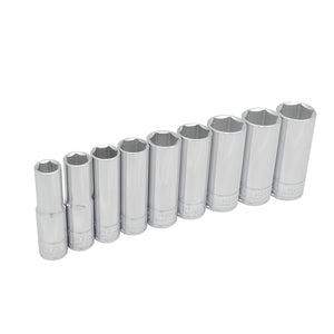 Juego de dados largos cuadro de 1/2", 6 puntas, en pulgadas, 9 piezas Urrea