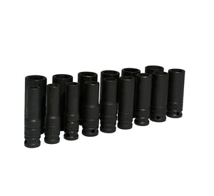 Juego de dados largos de impacto cuadro de 1/2", 6 puntas, métricos, 15 piezas Urrea-Longitud Total: 3 3/16"