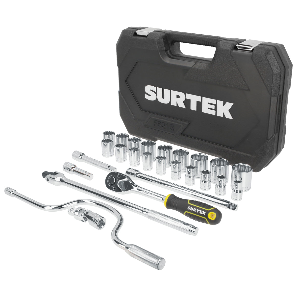 Juego de dados y accesorios cuadro de 1/2" en pulgadas, 27 piezas Surtek