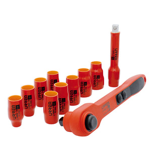 Juego de dados y accesorios cuadro de 1/2" métricos para 1000 V, 11 piezas Urrea