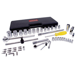 Juego de dados y accesorios cuadro de 1/4" y 1/2" métrico, 50 piezas Urrea