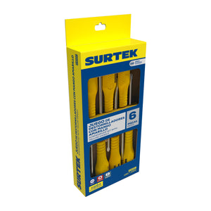 Juego de destornilladores con mango amarillo combinados, 6 piezas en caja Surtek