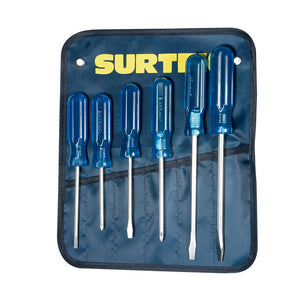 Juego de destornilladores con mango azul combinados, 6 piezas en estuche Surtek
