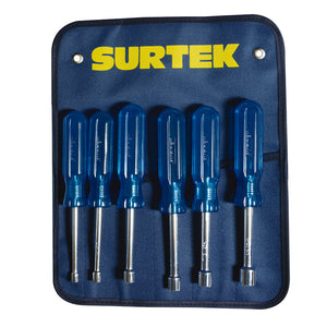 Juego de destornilladores con mango azul, en pulgadas, 6 piezas en estuche Surtek-Contiene: Boca Hexagonal": 3/16"X3", 1/4"X3", 5/16"X3", 3/8"