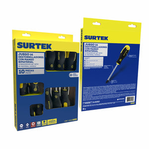 Juego de destornilladores con mango bimaterial combinados, 10 piezas en caja de cartón Surtek