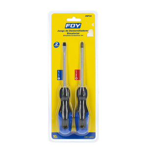 Juego de destornilladores con mango bimaterial combinados, 2 piezas en blíster Foy