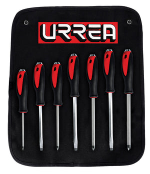 Juego de destornilladores con mango bimaterial de golpe, combinados, 7 piezas en caja Urrea