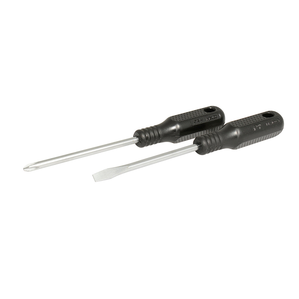 Juego de destornilladores con mango negro combinados, 2 piezas en blíster Foy-Contiene: 1 Estándar Redonda - 1 Phillips Redonda