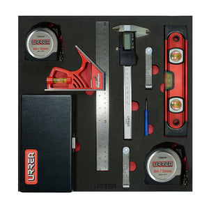 Juego de herramienta para medición 8 piezas, CH223-C Urrea-Contenido: Nivel Torpedo, Escuadra, 2-Flexómetro, 3-Calibrado
