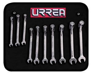 Juego de llaves combinadas flexibles pulido espejo métricas, 12 puntas, 10 pz en estuche Urrea