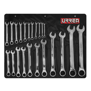 Juego de llaves combinadas pulido espejo de matraca mét, 12 puntas, 22 piezas en estuche Urrea