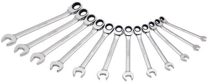 Juego de llaves combinadas pulido espejo de matraca spline rev mét, 12 pz en caja plástica Urrea