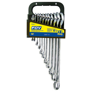 Juego de llaves combinadas pulido espejo en pulgadas, 12 puntas, 11 piezas en rack Foy