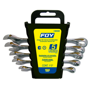 Juego de llaves combinadas pulido espejo en pulgadas, 12 puntas, 5 piezas en rack Foy