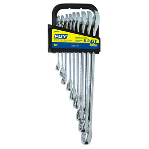 Juego de llaves combinadas pulido espejo en pulgadas, 12 puntas, 9 piezas en rack Foy