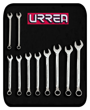 Juego de llaves combinadas pulido espejo métricas, 12 puntas, 10 piezas en estuche Urrea