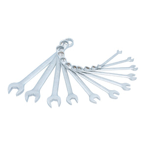 Juego de llaves combinadas satinadas en pulgadas, 12 puntas, 11 piezas en rack Urrea