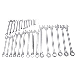 Juego de llaves combinadas satinadas en pulgadas, 12 puntas, 31 piezas en caja Urrea-Contenido (Medidas): 5/16"- 2 1/2"