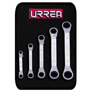 Juego de llaves de estrías pulido espejo acodadas de matraca en plg,12 pts,5 pz en estuche Urrea