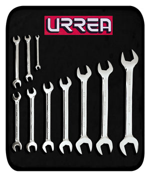 Juego de llaves españolas pulido espejo en pulgadas, 10 piezas en estuche Urrea