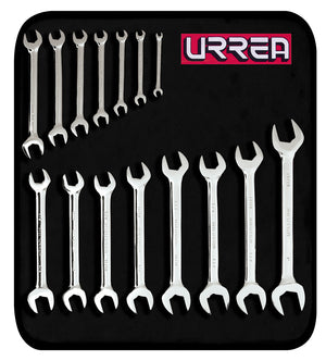 Juego de llaves españolas pulido espejo en pulgadas, 15 piezas en estuche Urrea
