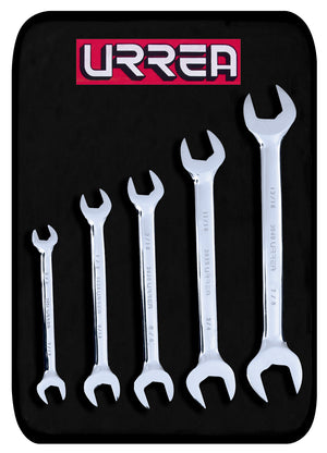 Juego de llaves españolas pulido espejo en pulgadas, 5 piezas en estuche Urrea