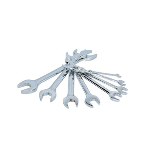 Juego de llaves españolas pulido espejo en pulgadas, 8 piezas en rack Urrea