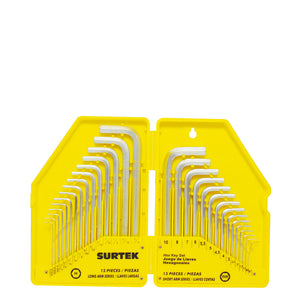 Juego de llaves hexagonales tipo "L", combinadas, 30 piezas en rack Surtek-Contenido (Medidas): 0.028"A 3/8"-0.7Mm A 10Mm