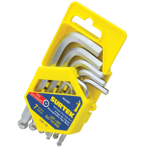 Juego de llaves hexagonales tipo "L" punta de bola, en pulgadas, 7 piezas en rack Surtek