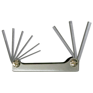 Juego de llaves hexagonales tipo navaja en pulgadas 5/64" a 1/4" estuche metálico, 9 pz Surtek-Medida Nominal: 5/64" - 3/32" - 7/64" - 1/8" - 9/64" - 5/32" - 3/1