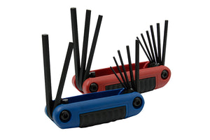 Juego de llaves hexagonales tipo navaja en pulgadas y métricas estuche bimaterial, 16 pz Urrea-Medida Nominal: 5/64" - 3/32" - 7/64" - 1/8" - 9/64" - 5/32" - 3/1