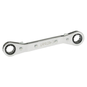 Llave de estrías pulido espejo acodada de matraca en pulgadas, 12 puntas, 3/8" x 7/16" Urrea