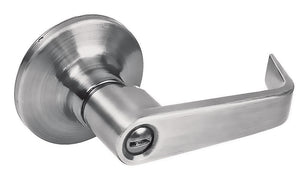 Manija tubular plana función baño, níquel satinado, llave estándar, blíster Lock
