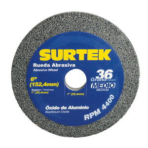 Rueda abrasiva de óxido de aluminio grano 36, 6" x 1" Surtek